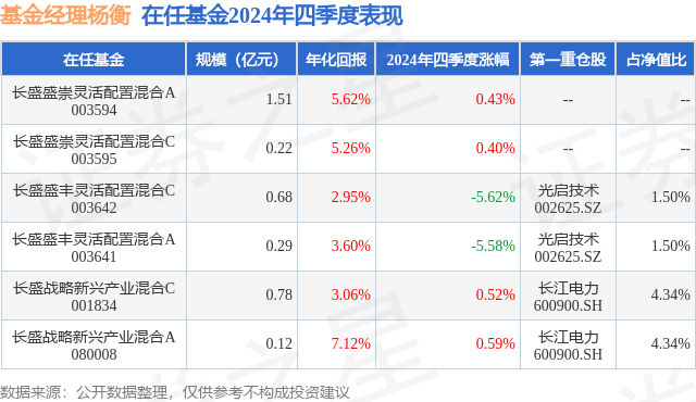 长盛盛丰灵活配置混合C现任基金经理为杨衡。其中在任基金经理杨衡已从业11年又24天,2016年11月18日正式接手管理长盛盛丰灵活配置混合C,任职期间累计回报为27.69%。目前还管理着6只基金产品(包括A类和C类),其中本季度表现最佳的基金为长盛战略新兴产业混合A(080008),季度净值涨幅为0.59%。