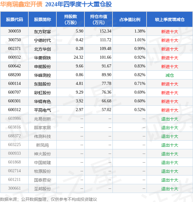 证券之星消息,日前华商瑞鑫定开债基金公布四季报,2024年四季度最新规模1.1亿元,季度净值涨幅为-0.18%。