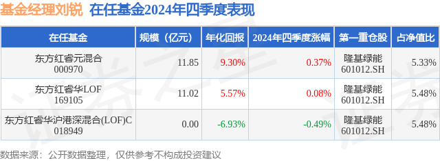 证券之星消息,日前东方红睿华LOF基金公布四季报,2024年四季度最新规模11.02亿元,季度净值涨幅为0.08%。