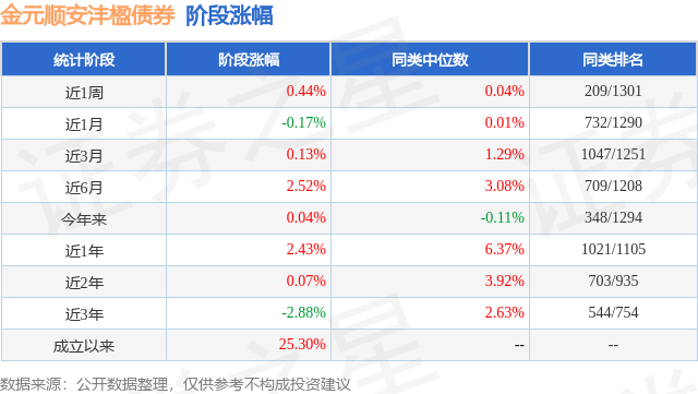 从业绩表现来看,金元顺安沣楹债券基金过去一年净值涨幅为2.43%,在同类基金中排名1021/1105,同类基金过去一年净值涨幅中位数为6.37%。而基金过去一年的最大回撤为-3.58%,成立以来的最大回撤为-10.08%。