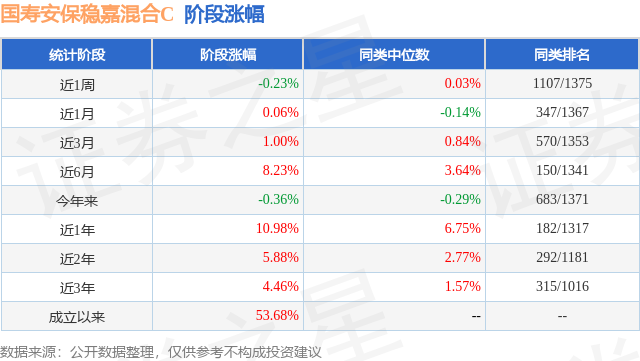从业绩表现来看,国寿安保稳嘉混合C基金过去一年净值涨幅为10.98%,在同类基金中排名182/1317,同类基金过去一年净值涨幅中位数为6.75%。而基金过去一年的最大回撤为-2.13%,成立以来的最大回撤为-11.22%。
