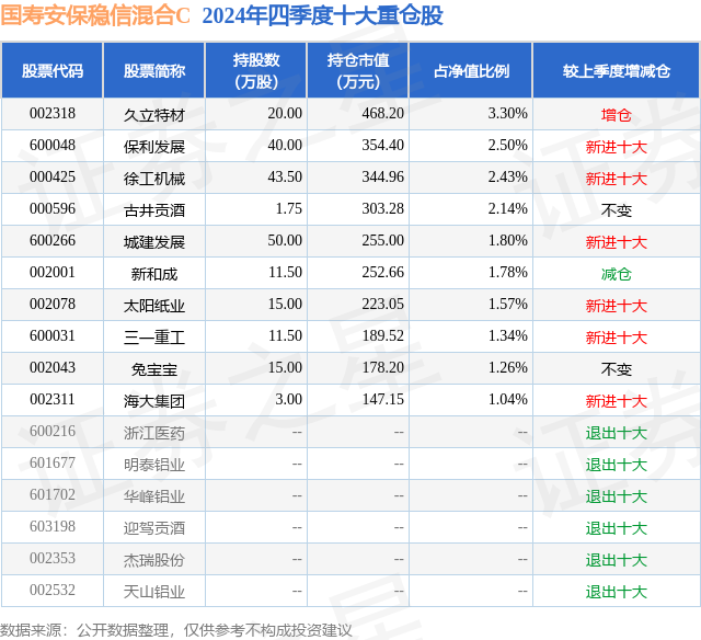 证券之星消息,日前国寿安保稳信混合C基金公布四季报,2024年四季度最新规模0.0亿元,季度净值涨幅为0.07%。