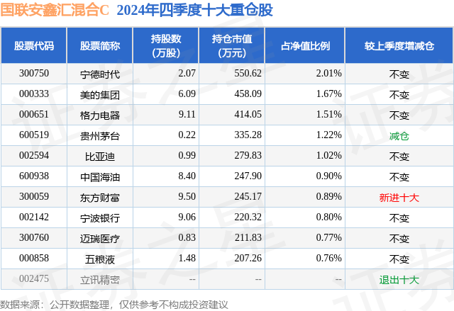 证券之星消息,日前国联安鑫汇混合C基金公布四季报,2024年四季度最新规模0.0亿元,季度净值涨幅为-0.16%。