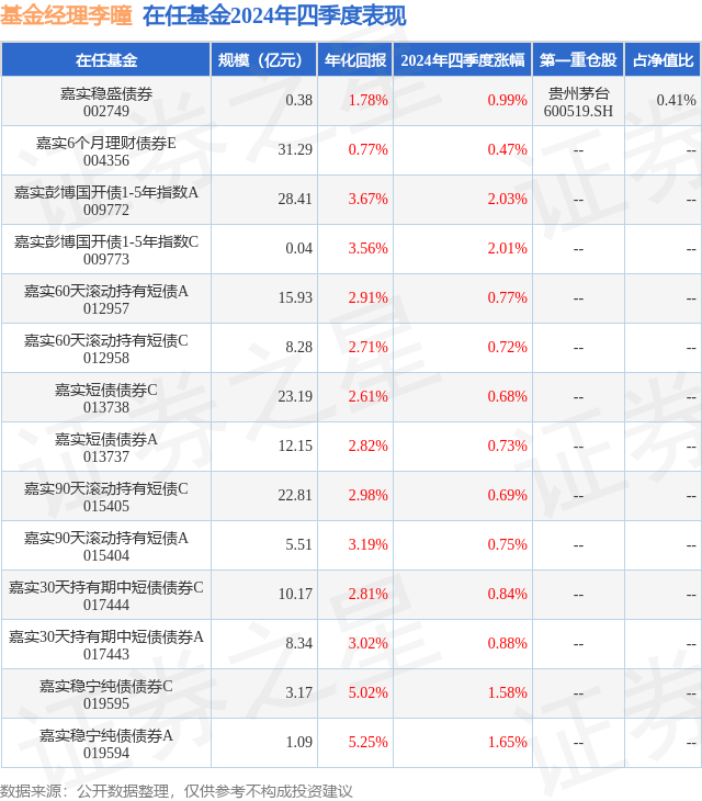 证券之星消息,日前嘉实稳盛债券基金公布四季报,2024年四季度最新规模0.38亿元,季度净值涨幅为0.99%。