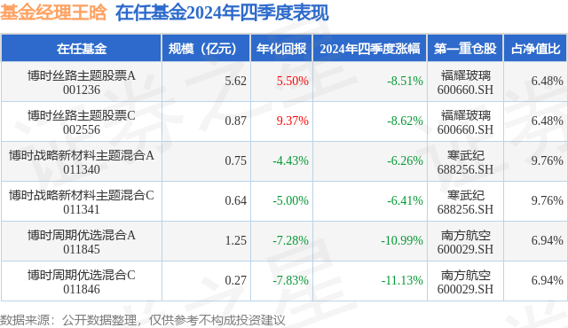 证券之星消息,日前博时丝路主题股票C基金公布四季报,2024年四季度最新规模0.87亿元,季度净值涨幅为-8.62%。