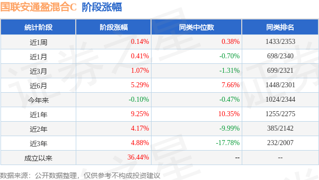 从业绩表现来看,国联安通盈混合C基金过去一年净值涨幅为9.25%,在同类基金中排名1255/2275,同类基金过去一年净值涨幅中位数为10.35%。而基金过去一年的最大回撤为-3.87%,成立以来的最大回撤为-10.76%。