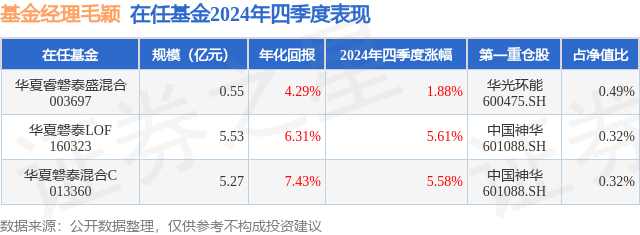 证券之星消息,日前华夏睿磐泰盛混合基金公布四季报,2024年四季度最新规模0.55亿元,季度净值涨幅为1.88%。