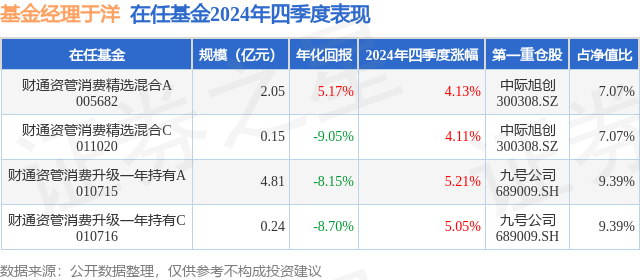 证券之星消息,日前财通资管消费精选混合A基金公布四季报,2024年四季度最新规模2.05亿元,季度净值涨幅为4.13%。