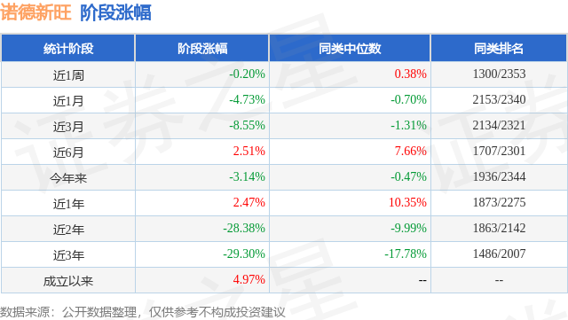 从业绩表现来看,诺德新旺基金过去一年净值涨幅为2.47%,在同类基金中排名1873/2275,同类基金过去一年净值涨幅中位数为10.35%。而基金过去一年的最大回撤为-21.9%,成立以来的最大回撤为-60.19%。