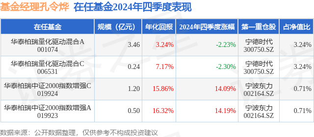 证券之星消息,日前华泰柏瑞量化驱动混合C基金公布四季报,2024年四季度最新规模0.24亿元,季度净值涨幅为-2.3%。