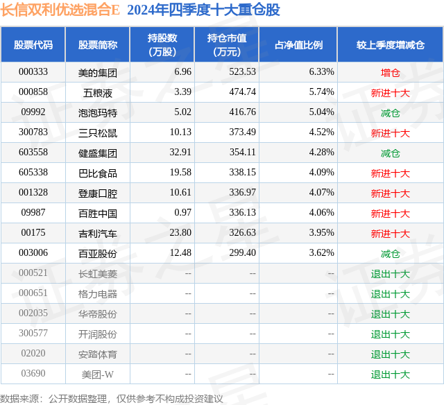 证券之星消息,日前长信双利优选混合E基金公布四季报,2024年四季度最新规模0.0亿元,季度净值涨幅为-0.17%。