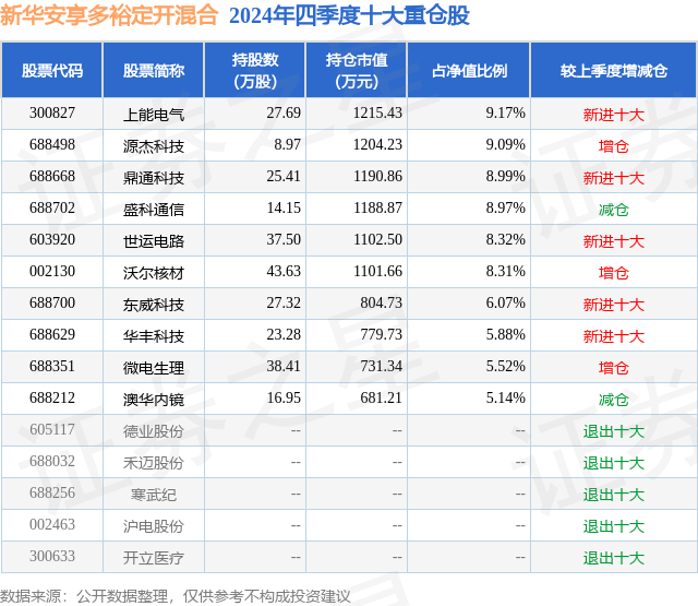 证券之星消息,日前新华安享多裕定开混合基金公布四季报,2024年四季度最新规模1.33亿元,季度净值涨幅为19.93%。