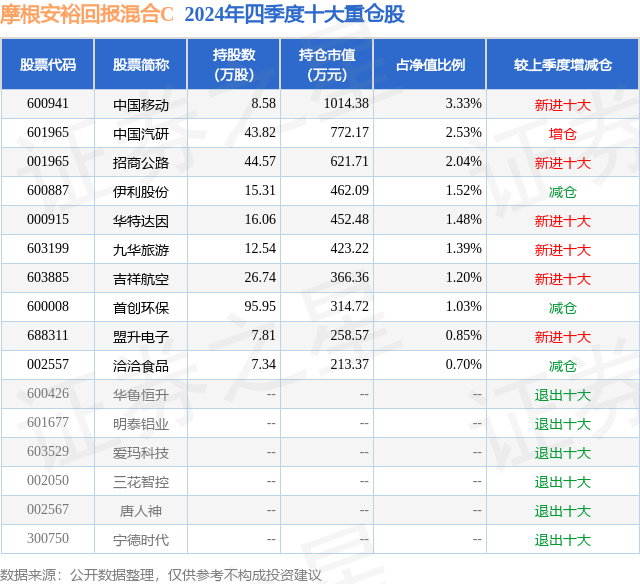 证券之星消息,日前摩根安裕回报混合C基金公布四季报,2024年四季度最新规模0.43亿元,季度净值涨幅为0.08%。
