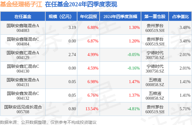 证券之星消息,日前国联安远见成长混合基金公布四季报,2024年四季度最新规模0.8亿元,季度净值涨幅为-4.81%。