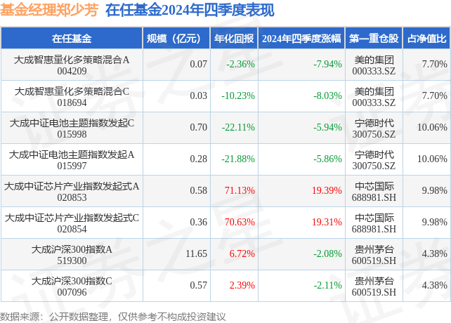证券之星消息,日前大成智惠量化多策略混合A基金公布四季报,2024年四季度最新规模0.07亿元,季度净值涨幅为-7.94%。