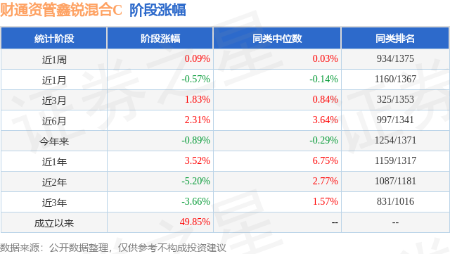 从业绩表现来看,财通资管鑫锐混合C基金过去一年净值涨幅为3.52%,在同类基金中排名1159/1317,同类基金过去一年净值涨幅中位数为6.75%。而基金过去一年的最大回撤为-7.86%,成立以来的最大回撤为-13.29%。
