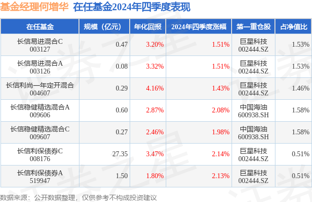 证券之星消息,日前长信利尚一年定开混合基金公布四季报,2024年四季度最新规模0.29亿元,季度净值涨幅为1.43%。