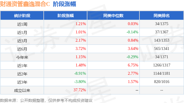 从业绩表现来看,财通资管鑫逸混合C基金过去一年净值涨幅为1.48%,在同类基金中排名1266/1317,同类基金过去一年净值涨幅中位数为6.75%。而基金过去一年的最大回撤为-12.36%,成立以来的最大回撤为-18.95%。