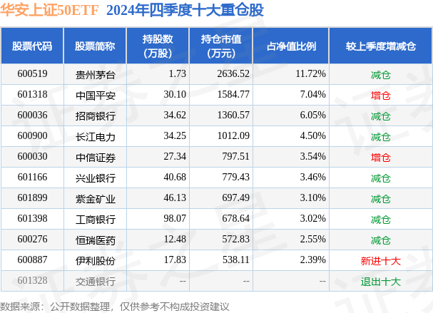 证券之星消息,日前华安上证50ETF基金公布四季报,2024年四季度最新规模2.25亿元,季度净值涨幅为-2.47%。