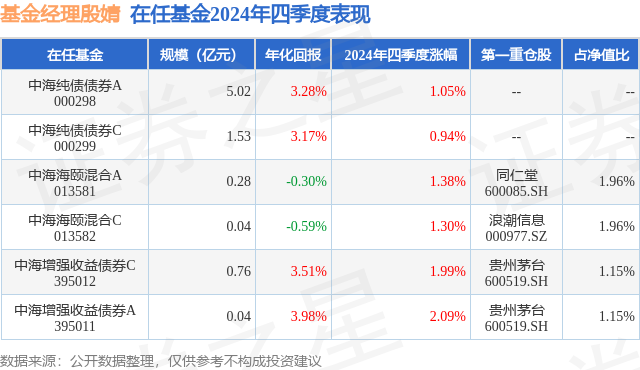 证券之星消息,日前中海增强收益债券A基金公布四季报,2024年四季度最新规模0.04亿元,季度净值涨幅为2.09%。