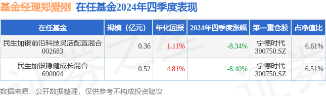 证券之星消息,日前民生加银稳健成长混合基金公布四季报,2024年四季度最新规模0.52亿元,季度净值涨幅为-8.4%。