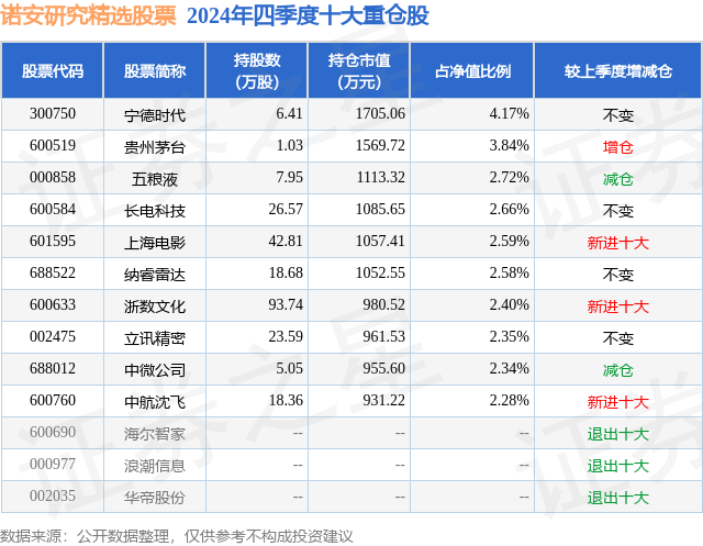 证券之星消息,日前诺安研究精选股票基金公布四季报,2024年四季度最新规模4.09亿元,季度净值涨幅为-4.96%。