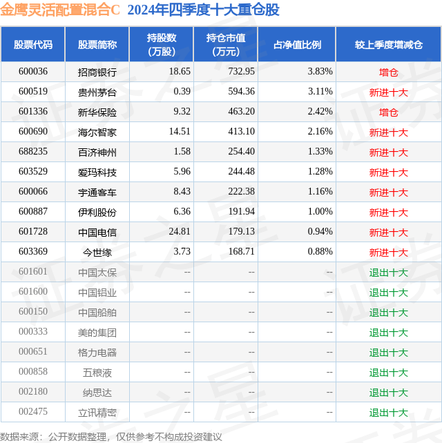 证券之星消息,日前金鹰灵活配置混合C基金公布四季报,2024年四季度最新规模0.08亿元,季度净值涨幅为-1.47%。