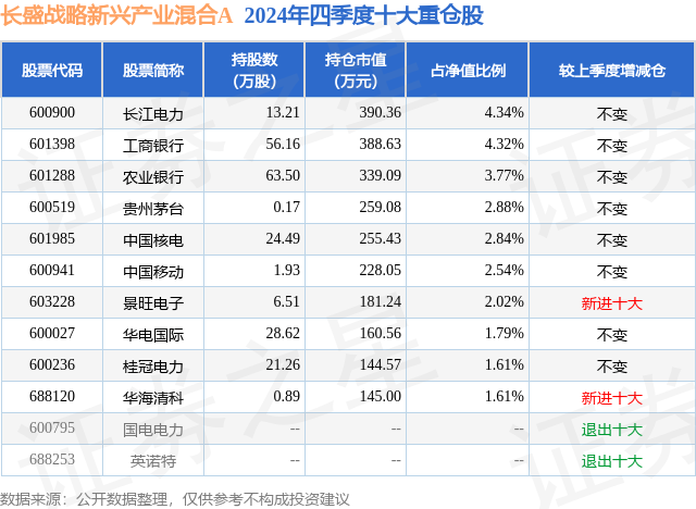 证券之星消息,日前长盛战略新兴产业混合A基金公布四季报,2024年四季度最新规模0.12亿元,季度净值涨幅为0.59%。