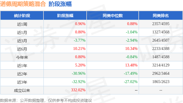 从业绩表现来看,诺德周期策略混合基金过去一年净值涨幅为5.2%,在同类基金中排名3214/4129,同类基金过去一年净值涨幅中位数为13.48%。而基金过去一年的最大回撤为-21.66%,成立以来的最大回撤为-55.35%。