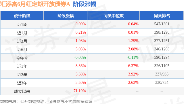 从业绩表现来看,汇添富6月红定期开放债券A基金过去一年净值涨幅为8.36%,在同类基金中排名326/1105,同类基金过去一年净值涨幅中位数为6.37%。而基金过去一年的最大回撤为-3.17%,成立以来的最大回撤为-10.16%。