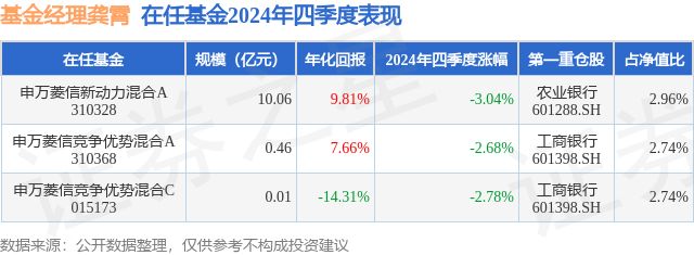 证券之星消息,日前申万菱信新动力混合A基金公布四季报,2024年四季度最新规模10.06亿元,季度净值涨幅为-3.04%。