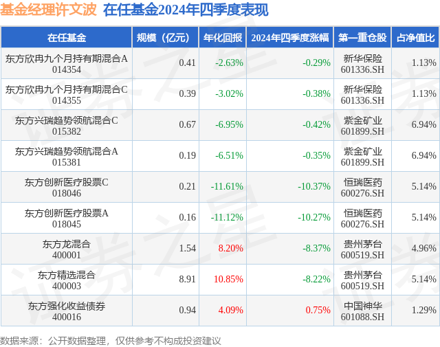 证券之星消息,日前东方精选混合基金公布四季报,2024年四季度最新规模8.91亿元,季度净值涨幅为-8.22%。