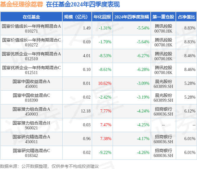 证券之星消息,日前国富潜力组合混合A基金公布四季报,2024年四季度最新规模12.18亿元,季度净值涨幅为-4.24%。
