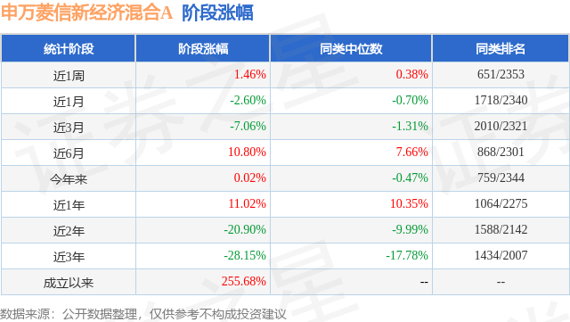 从业绩表现来看,申万菱信新经济混合A基金过去一年净值涨幅为11.02%,在同类基金中排名1064/2275,同类基金过去一年净值涨幅中位数为10.35%。而基金过去一年的最大回撤为-19.7%,成立以来的最大回撤为-59.61%。