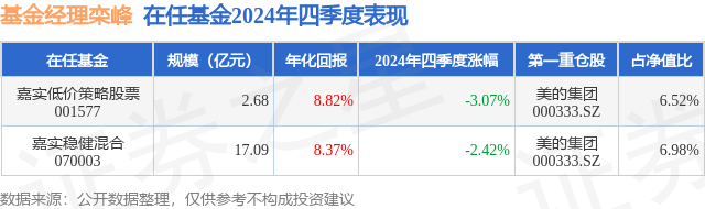证券之星消息,日前嘉实稳健混合基金公布四季报,2024年四季度最新规模17.09亿元,季度净值涨幅为-2.42%。