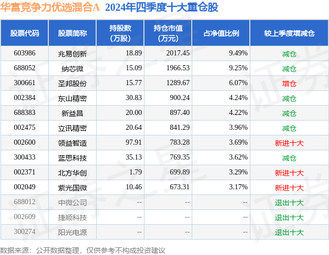 证券之星消息,日前华富竞争力优选混合A基金公布四季报,2024年四季度最新规模2.12亿元,季度净值涨幅为5.47%。