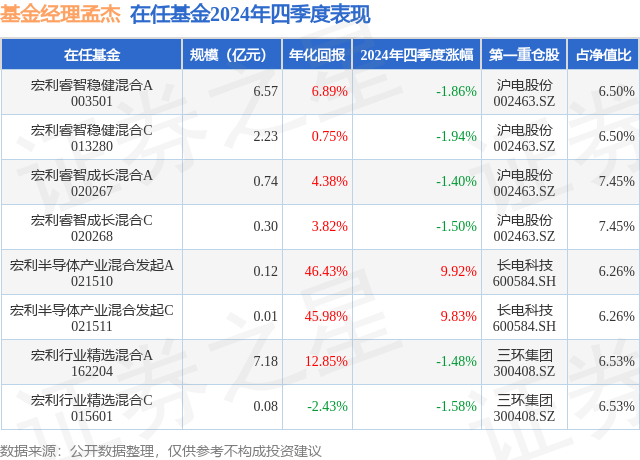 证券之星消息,日前宏利行业精选混合A基金公布四季报,2024年四季度最新规模7.18亿元,季度净值涨幅为-1.48%。