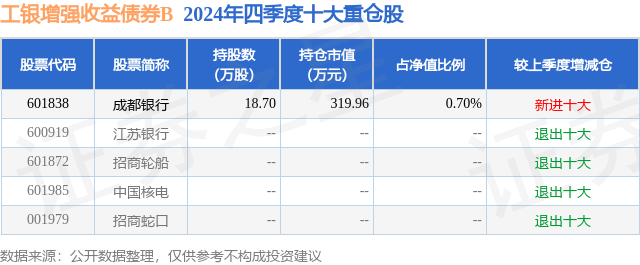 证券之星消息,日前工银增强收益债券B基金公布四季报,2024年四季度最新规模2.13亿元,季度净值涨幅为2.31%。