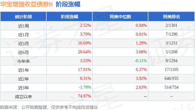 从业绩表现来看,华宝增强收益债券B基金过去一年净值涨幅为17.91%,在同类基金中排名17/1105,同类基金过去一年净值涨幅中位数为6.37%。而基金过去一年的最大回撤为-12.13%,成立以来的最大回撤为-24.0%。