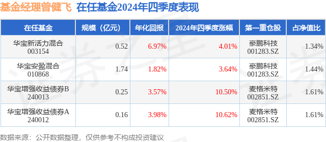 证券之星消息,日前华宝增强收益债券B基金公布四季报,2024年四季度最新规模0.25亿元,季度净值涨幅为10.5%。
