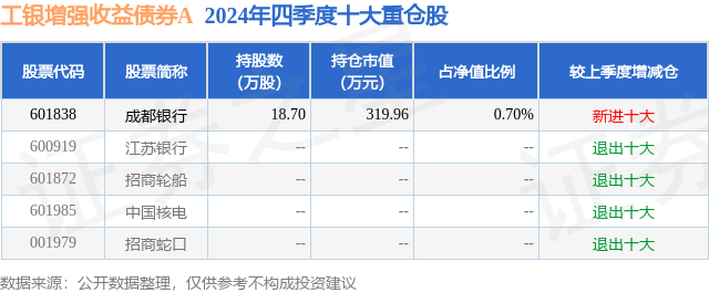 证券之星消息,日前工银增强收益债券A基金公布四季报,2024年四季度最新规模2.41亿元,季度净值涨幅为2.41%。