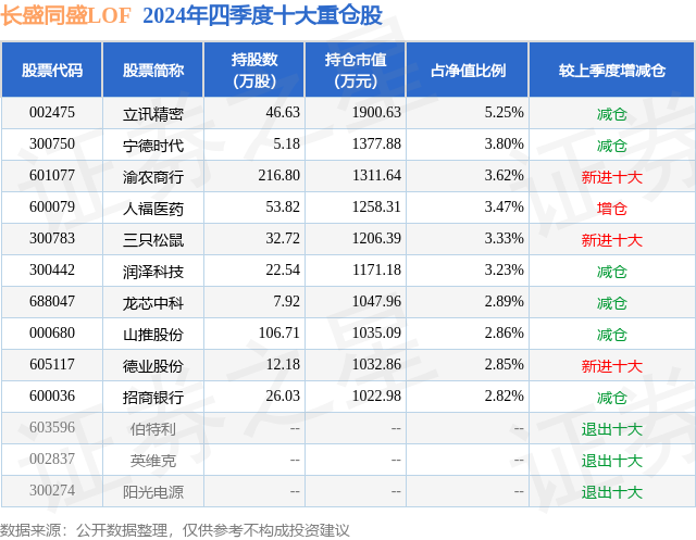 证券之星消息,日前长盛同盛LOF基金公布四季报,2024年四季度最新规模3.62亿元,季度净值涨幅为3.22%。
