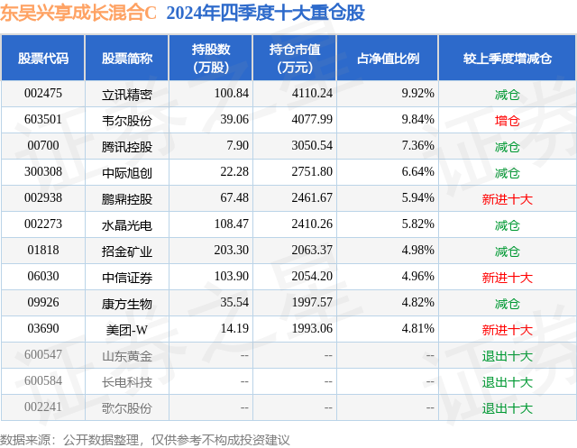 证券之星消息,日前东吴兴享成长混合C基金公布四季报,2024年四季度最新规模0.65亿元,季度净值涨幅为-3.31%。