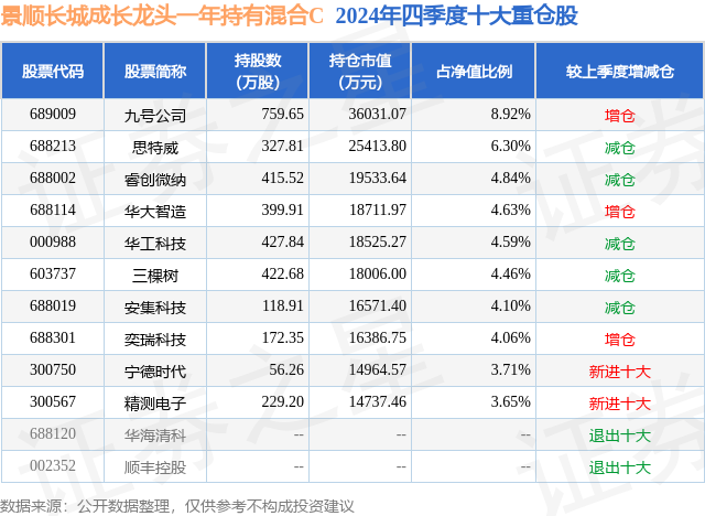 对本季度基金运作,基金经理的观点如下:随着上季度末市场大幅反弹,本季度市场波动率明显下降,个股表现结构性分化。本季度,基金重仓股表现相对较弱,科技成长方向相对较强,其中,沪深300下跌2.06%,创业板指下跌1.54%,科创50表现强劲,大幅上涨13.36%。本季度,我们的基金实现了正收益,也让全年收益率回正。尽管我们组合表现最终依然差强人意,但是,我还是对组合中的大部分公司今年的业绩表现是非常满意的。绝大部分公司相对于同行表现出强大的竞争力,在我最焦虑和痛苦的时候,他们在经营层面的杰出表现成为我最坚强的后盾。展望未来,我越发有信心,因为不少公司已经熬过了最跌宕起伏的成长阶段,从小树苗长成挺拔的大树,希望它们有一天能成长为参天大树。这些企业的崛起已经很难阻挡了,轻舟已过万重山。我深信市场终将会给它们更公允的定价,期待2025年能见证灿烂花开,我们过去埋下的希望种子终迎收获。时至今日,市场依旧充斥着各种怀疑论,市场信心依然是相对脆弱的。事实上,这并不是陌生的场景。我清晰地记得,2008年推出四万亿的时候,也有声音认为是力度不足,但是,最终事实是有目共睹的。2016年供给侧改革也同样有遇到怀疑,2016年6月底我在大规模投资煤炭股之前也与市场有所交流,那时质疑和看空是主流,但是,当时行业的基本面实际上已经发生了明显变化,而大部分人依然停留在过去的认知中。这些年来,供给侧改革的红利对煤炭股利润的正面影响有目共睹,这也是近几年煤炭股持续大幅跑赢市场的重要原因。同样,2014-15年开启的棚改货币化起初也是充满质疑,我也是不相信人群中的一员,甚至到2017年都抱有怀疑态度,但是,轰轰烈烈的地产链行情带来不少十倍股。大家要相信一个常识:市场底部充满怀疑,市场顶部充满共识。我们不能因为普遍的怀疑而放弃独立思考,我们也要相信政策制定者对形势的应对是动态的、有弹性的。从怀疑到共识,这个过程会创造很多投资机会。无论是我们普通人还是大部分的企业,在成长路上都会遇到各种各样的困难和波折,一味去夸大过去发生的困难与波折,不仅无济于事,更有可能让自己错失很多机会。更有意义的是我们面对困难要迎难而上,面对波折要处事不惊,要动态去应对,着眼于未来且立足于现实去抓住各种机会。天天担忧火星撞地球是没有意义的,如果真有那一天,钱也不重要了。经济遇到困难,危言耸听就会泛滥。哪怕过去高速发展的20多年,我也经历过无数次的危言耸听,就譬如,曾经有人断言外资零售商入华将会席卷中国零售市场,逻辑是我们本土零售企业无论资金实力、供应链管理、商品组合和规模效应等各方面都是远不如外资巨头,但是,我们本土零售企业最终还是占据了绝大部分市场。很多完美无瑕的逻辑往往只是纸上谈兵,他们忽视了现实状况以及企业的应对能力。外资巨头会有它难以处理的问题和劣势,本土零售商也有本土优势、更高效扁平的管理和更灵活应对的策略等优势。同样道理也适用于今天,我们当下的确面临着各种困难与挑战,但是,我们不应忽视的是,中国产业作为一个整体,依然在高歌猛进。典型如汽车行业,回想2018年,面对市场份额不断下降的国产车,我们都还在忧愁国产车的未来出路在哪。我那时候是极少数看好中国汽车产业崛起的投资人,也无法想象到比亚迪、理想和问界等车企今天达到的高度,更无法想象小米的首款车型就能如此之火爆。爆火的背后体现的是中国汽车工业的全产业链优势,正因为有完整的产业链支撑,小米才能打造出性价比如此高的产品,才能吸引到那么多消费者。从绝望到全面崛起,我们汽车工业只用了六年。这也印证了比尔盖茨的那句话,大家往往高估一年的变化,低估五至十年的变化。还有我们过去几年一直坚定投资的半导体行业,行业的突破与发展这些年一直超我们的预期,今天现在我们的半导体出口金额已超过日韩,尽管我们出口依然是以中低端的成熟制程为主。但是,星星之火已现,长期对先进制程工程化的突破,烈火燎原只是时间问题。即使在支撑美国宏大叙事的AI领域,我们的进步也是有目共睹的。最近,宇树(Unitree)的轮足机器狗与开源MoE模型DeepSeek-V3的横空出世震动了整个AI圈。过去十年,我们的朋友圈一直都在惊叹波士顿动力多么厉害,似乎刹那间,宇树的轮足机器狗已经是更加强大的存在,并且成本还便宜如此多。同样的奇迹也发生在大模型领域,DeepSeek推出了极低成本的开源模型,直接把训练成本下降10倍以上。大家突然发现,我们的算力落后还可以通过提升训练效率和降低训练成本来弥补,更重要的是我们模型的追赶速度如此之快。谷歌前CEOEricSchmidt在一年前还宣称美国AI已经把我们甩开了,但是,最近的采访已经彻底改口说,中国的AI已经非常接近美国。OpenAIGPT5.0不断在推后,如果最终推出只是渐进式进步,而不是跳跃式的突破,中国企业迎头赶上将是时间问题。快速的算力通缩也会让中国企业以更低的成本实现,最终体现后发者优势。在如此之快的算力通缩之下,当技术发展快于算力通缩,美国AI企业的优势是不断增强,但是,如果技术发展慢于算力通缩,美国企业的AI优势将会不断减弱。AI技术突破并没有一开始预期那么快,算力依然在快速通缩,我们与美国的AI差距并不一定是扩大的,更有可能是快速缩小的。在高端的科技