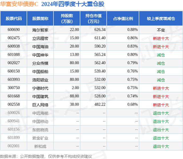 证券之星消息,日前华富安华债券C基金公布四季报,2024年四季度最新规模0.35亿元,季度净值涨幅为-0.18%。
