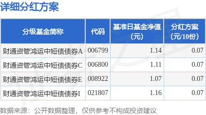 证券之星消息,1月24日发布《财通资管鸿运中短债债券型证券投资基金分红公告》。本次分红为2025年度的第1次分红。公告显示,本次分红的收益分配基准日为1月1日,详细分红方案如下: