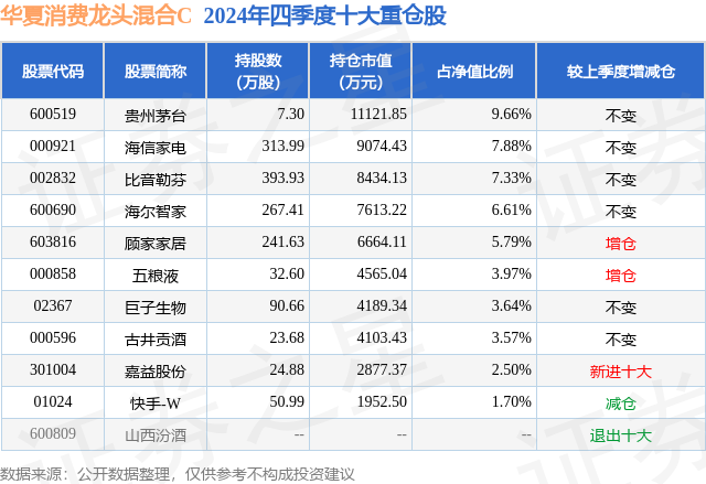 证券之星消息,日前华夏消费龙头混合C基金公布四季报,2024年四季度最新规模1.03亿元,季度净值涨幅为-8.69%。