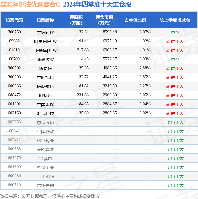 证券之星消息,日前嘉实阿尔法优选混合C基金公布四季报,2024年四季度最新规模1.04亿元,季度净值涨幅为-8.11%。
