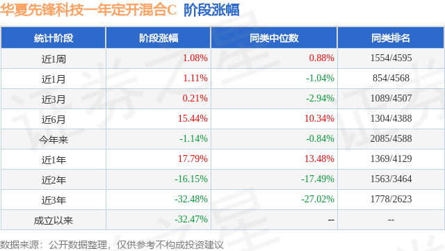 从业绩表现来看,华夏先锋科技一年定开混合C基金过去一年净值涨幅为17.79%,在同类基金中排名1369/4129,同类基金过去一年净值涨幅中位数为13.48%。而基金过去一年的最大回撤为-14.86%,成立以来的最大回撤为-54.44%。