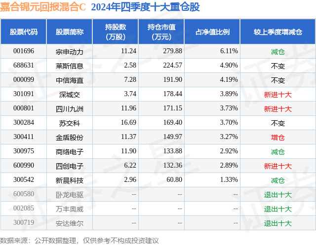 证券之星消息,日前嘉合锦元回报混合C基金公布四季报,2024年四季度最新规模0.12亿元,季度净值涨幅为10.81%。